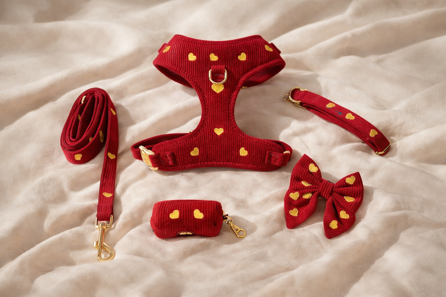 Pup Wishes Red Velvet Dog Walking Matching Harness Set- Limited Edition