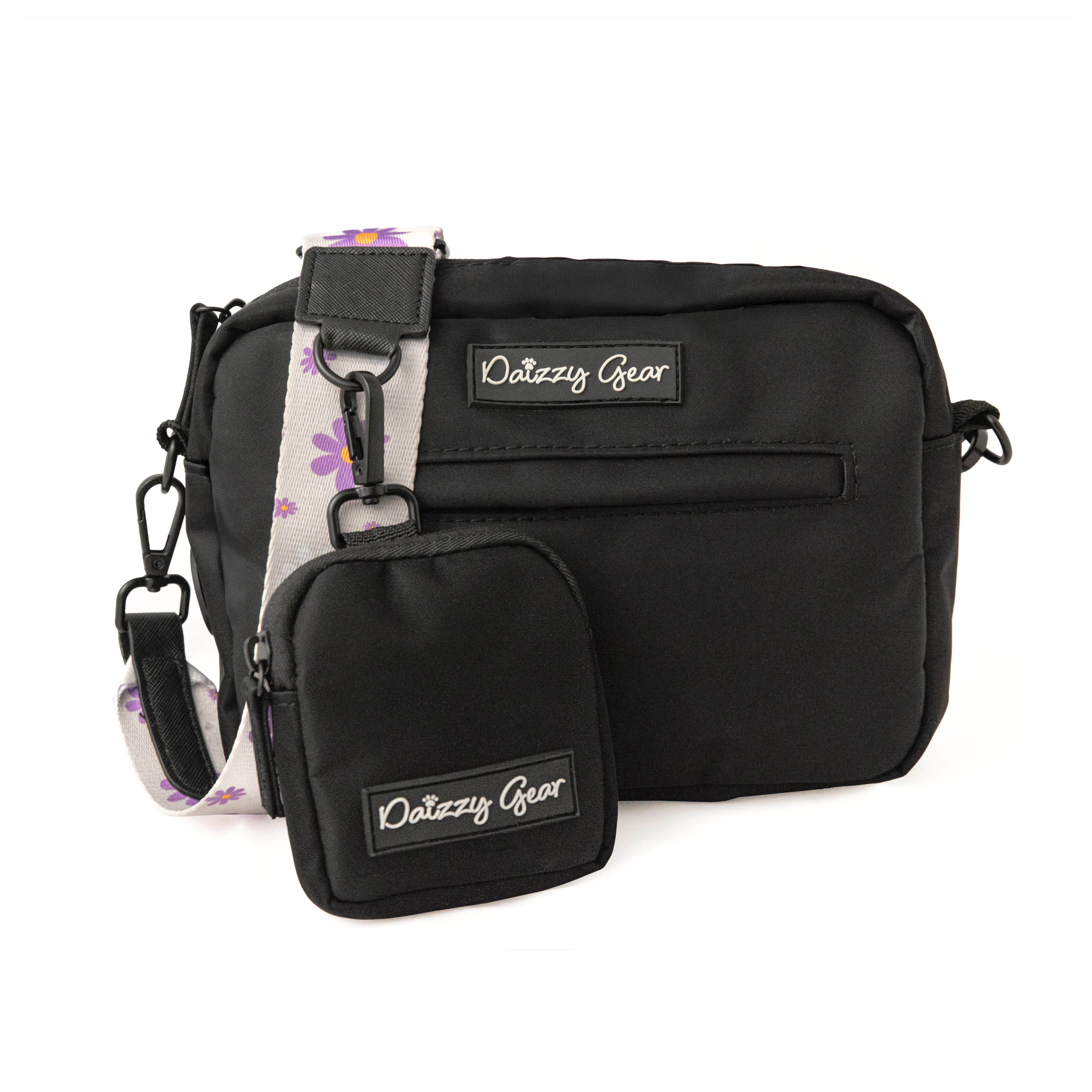 Experience unmatched convenience and style with the Daizzy Gear Dog Walking Crossbody Bag with Treat Pouch. This waterproof, hands-free bag includes a built-in poop bag dispenser and multiple compartments for treats and toys, all secured with adjustable straps for a customized fit. Designed to perfectly complement the Daizzy Gear Daisies Dream Matching Harness Set, it combines fashion and functionality for every walk. Crafted for pet owners who appreciate quality and durability, this bag keeps your essentials close while turning heads on your daily strolls.