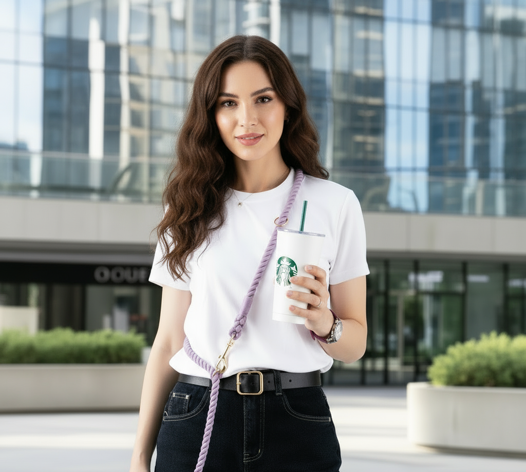Designed for comfort and convenience, this versatile leash lets you move hands-free while keeping your pup close. Whether you wear it around your waist, across your body, or use it as a traditional leash, this stylish purple rope leash offers flexibility for every lifestyle.