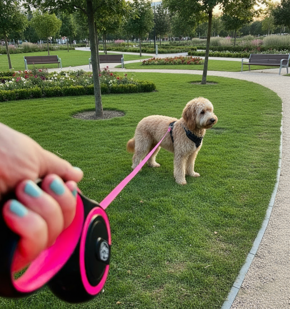 The Pink Retractable Dog Leash is ideal for fashion-forward pet parents who want a leash that performs as beautifully as it looks.