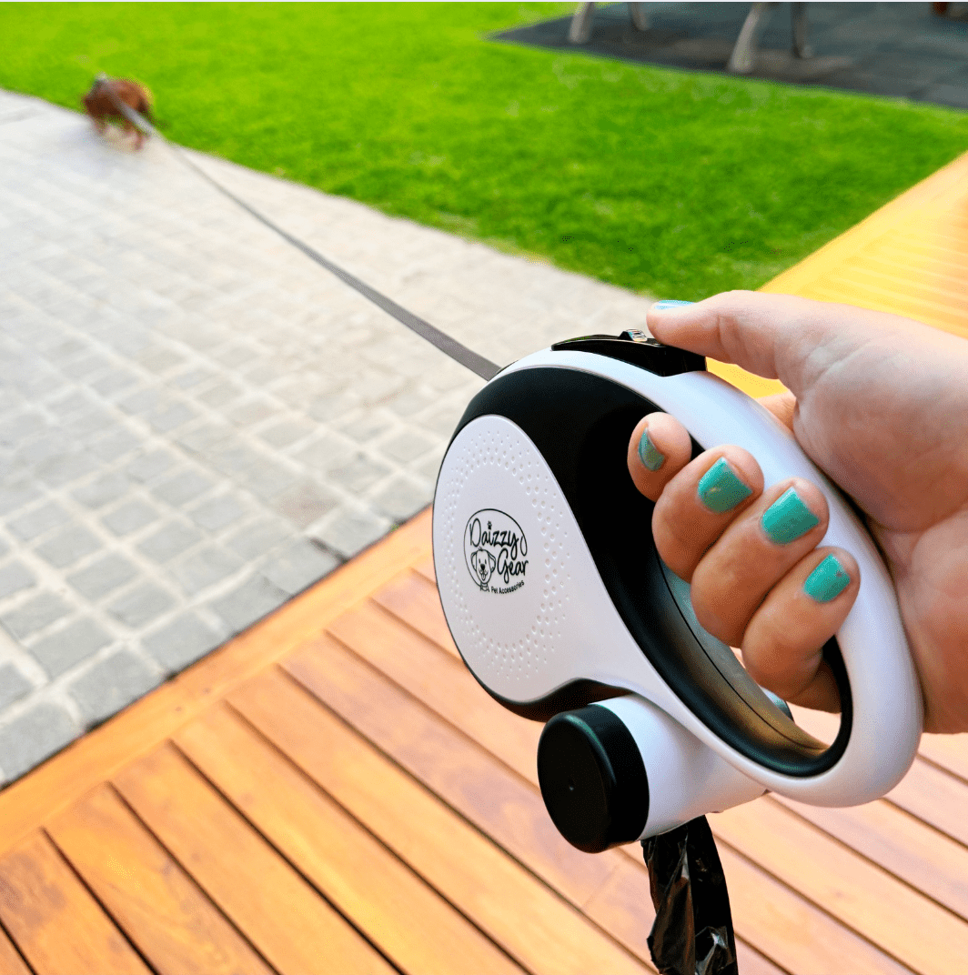 • White Retractable Dog Leash with Poop Bag Dispenser - Daizzy Gear - Stylish Accessories for Dogs